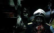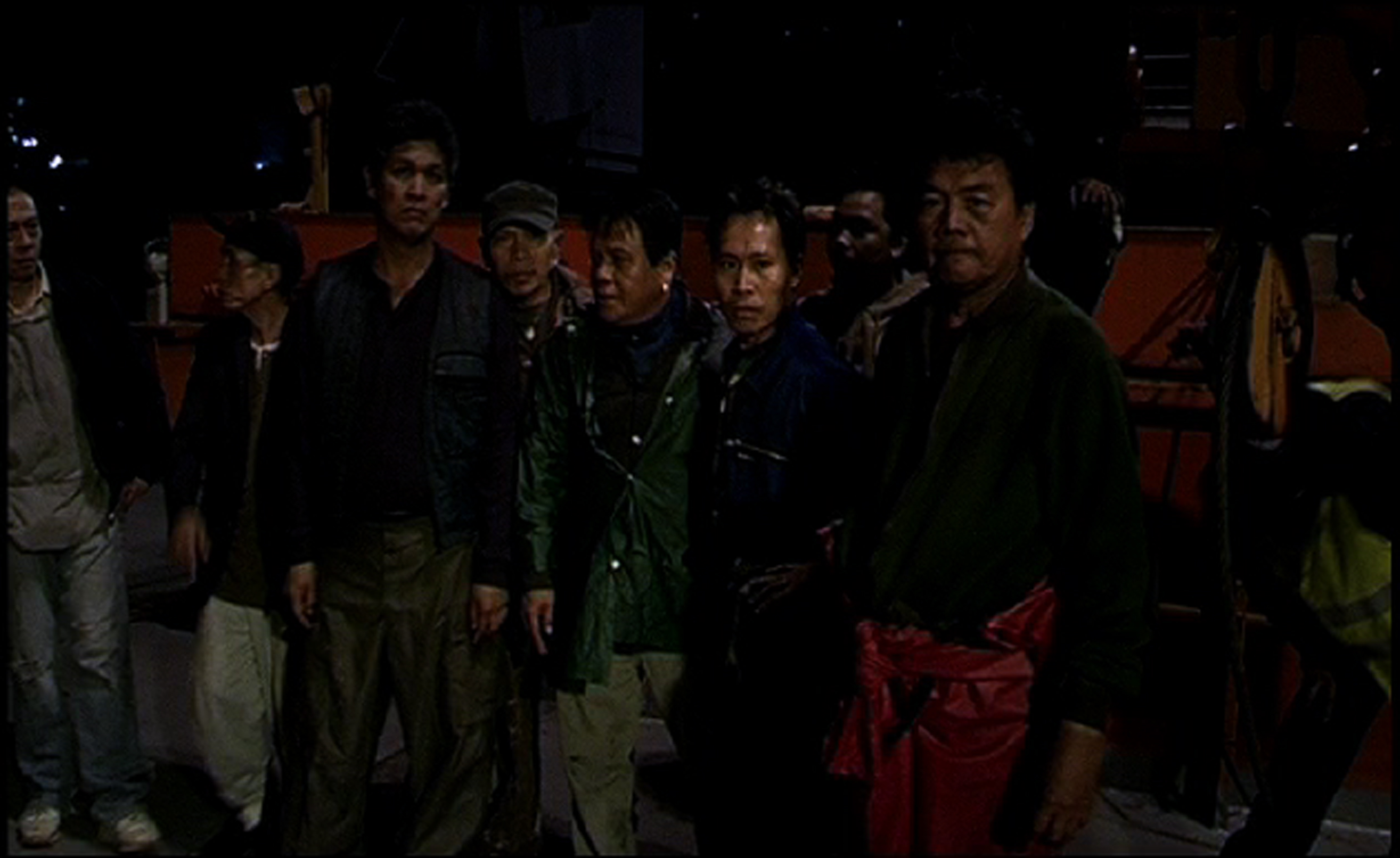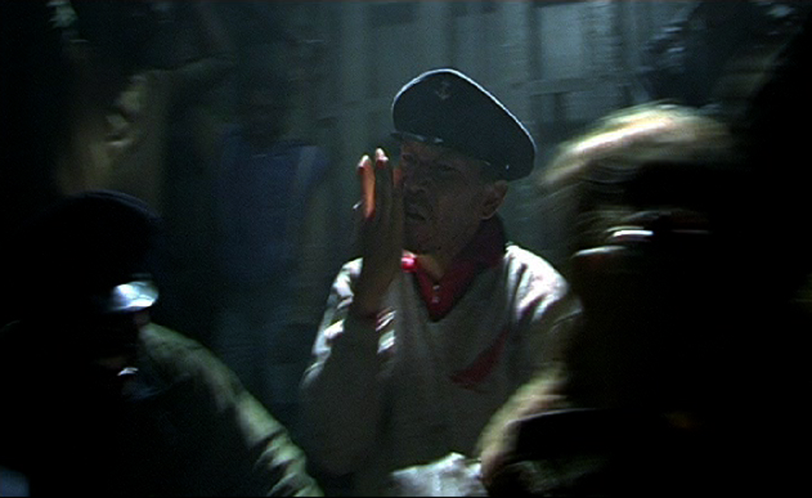 3) A trance level, on which a rhythmic-musical space induces emotions from the outside and the Jamaican, Filipino, South American and Russian sailors lend their brains, nerves and muscles to the ghosts of the Comintern functionaries. A depiction of a performative experiment involving techniques of self tranformation that refers to Brecht’s didactic pieces (particularly "The Measure Taken") as well as the subversive appropriation of colonial rituals by the Rastifaris and the Haouka (particularly the "Cinetrance" experiment in Rouch’s "Les Mâitres Fous") and also the cinematographic trance spaces of the musical film. Essential for this level is the employment of music.